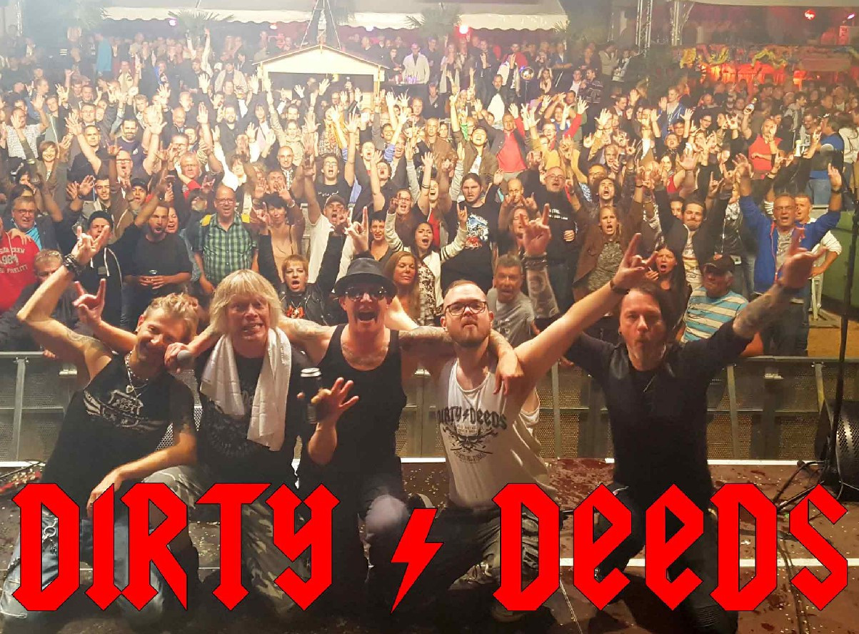 Mit Alex Kraft (guitar, vocals), Joe Daniels (guitar, vocals), Alex Weigand (bass, vocals), Martin Jug (drums) und Marcus “BC” Pföhler (vocals) ist das klassische AC/DC- Line Up der Bon Scott Ära komplett. Dirty Deeds haben sich zum Ziel gesetzt, ausschließlich AC/DC- Stücke aus der „guten alten Zeit“ zu spielen. Das Repertoire umfasst sämtliche Titel der ersten fünf LP´s & der australischen Veröffentlichungen.