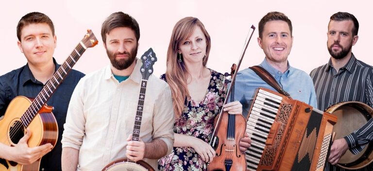 Joanna Hyde berührt mit ihrer brillanten Fiddle und fesselnden Stimme das Herz eines jeden Zuhörers und nimmt mit auf eine faszinierende Reise des Irish Folk. Daniel Collins zaubert mit seinem kreativen Spiel auf dem Akkordeon und Keyboard frische Klangfarben, die Tradition und Moderne meisterhaft verbinden. Colm Phelan bringt mit seiner kraftvollen Bodhrán den energetischen Puls der Band zum Leben, während der virtuose Alan Reid am Banjo mit seinem mitreißenden Spiel begeistert und sein Können in jedem Ton entfaltet. Das Ensemble wird perfekt ergänzt durch Conal O’Kane an der Gitarre, der die Melodien mit seinem rhythmischen Groove untermalt und für unvergessliche Momente voller Leidenschaft und Energie sorgt!